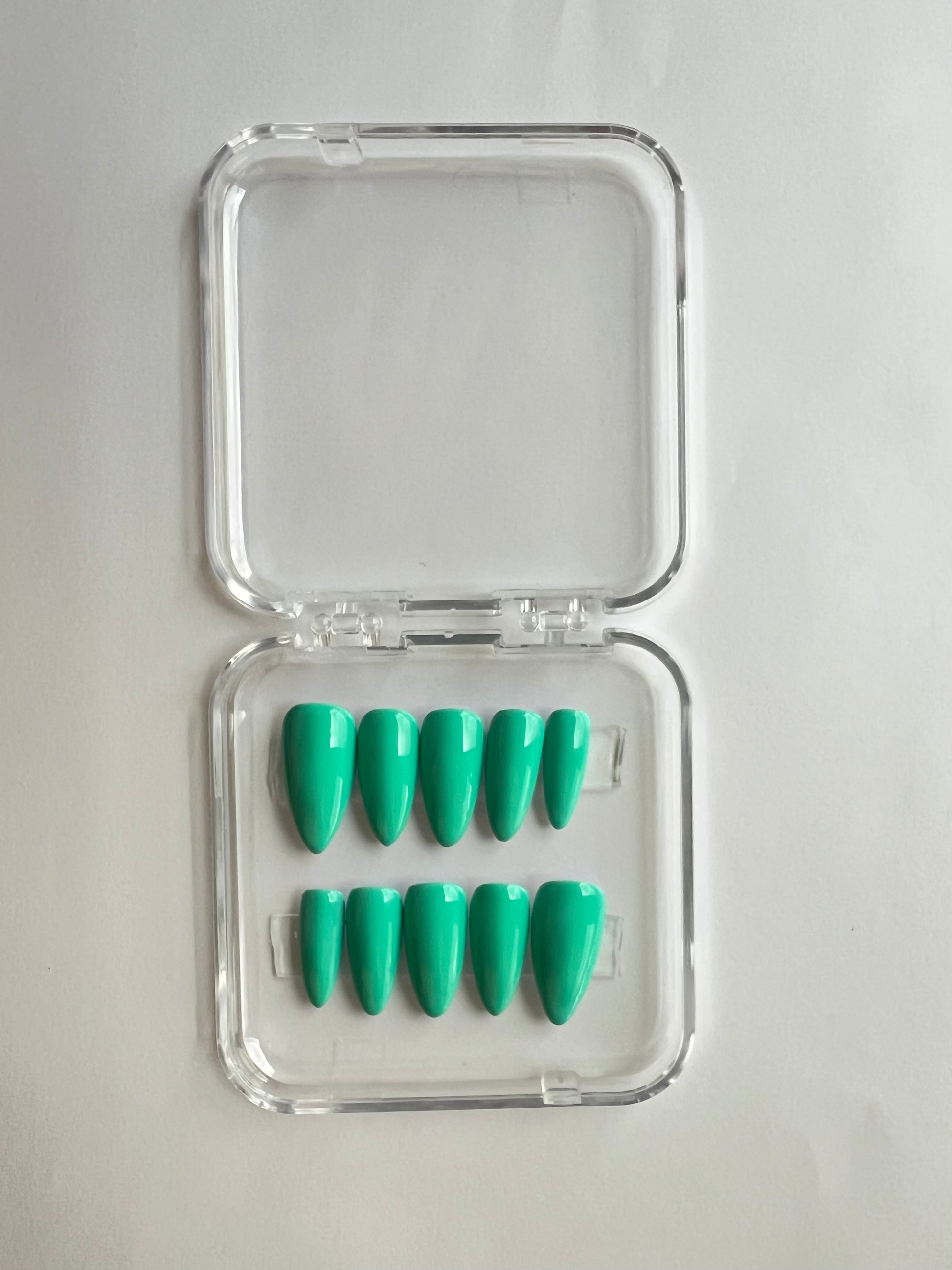 A captivating greenish-teal that evokes the serene beauty of hidden, tranquil waters. This enchanting shade brings a refreshing and calming vibe to your nails, perfect for adding a touch of mystery and elegance.